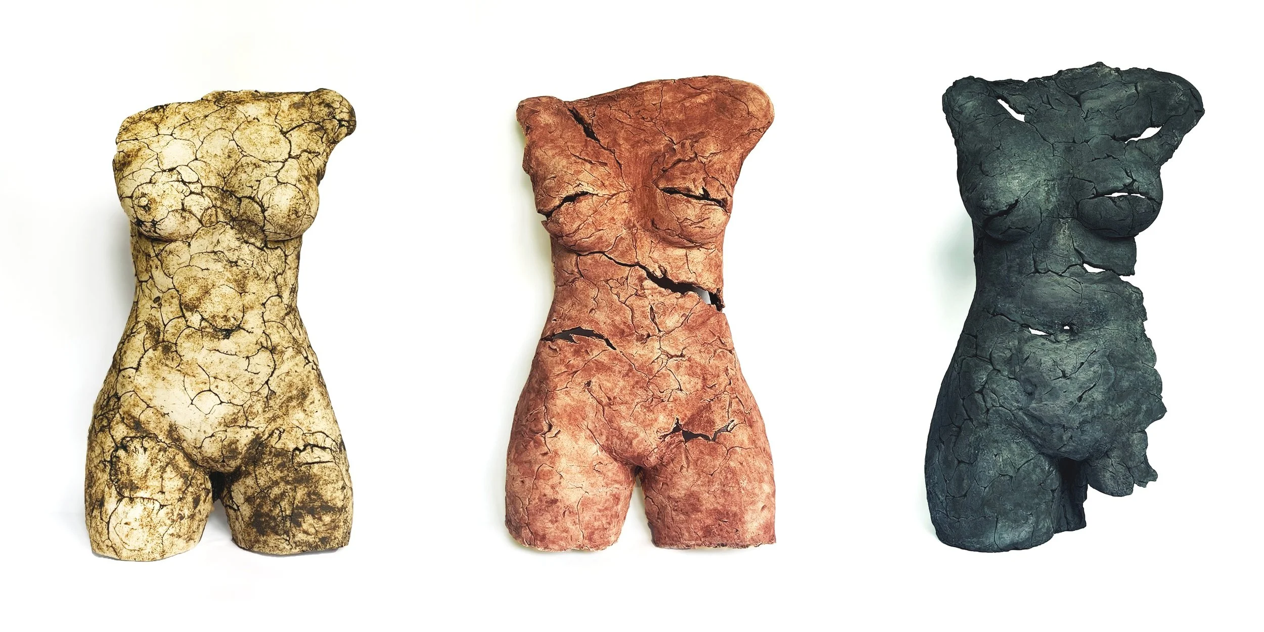 A ceramic figure of a crouching woman leaning only on her toes; remaining balanced in such a position requires maximum concentration and awareness - a metaphor for a situation in which, despite losses and damages, we still maintain stability