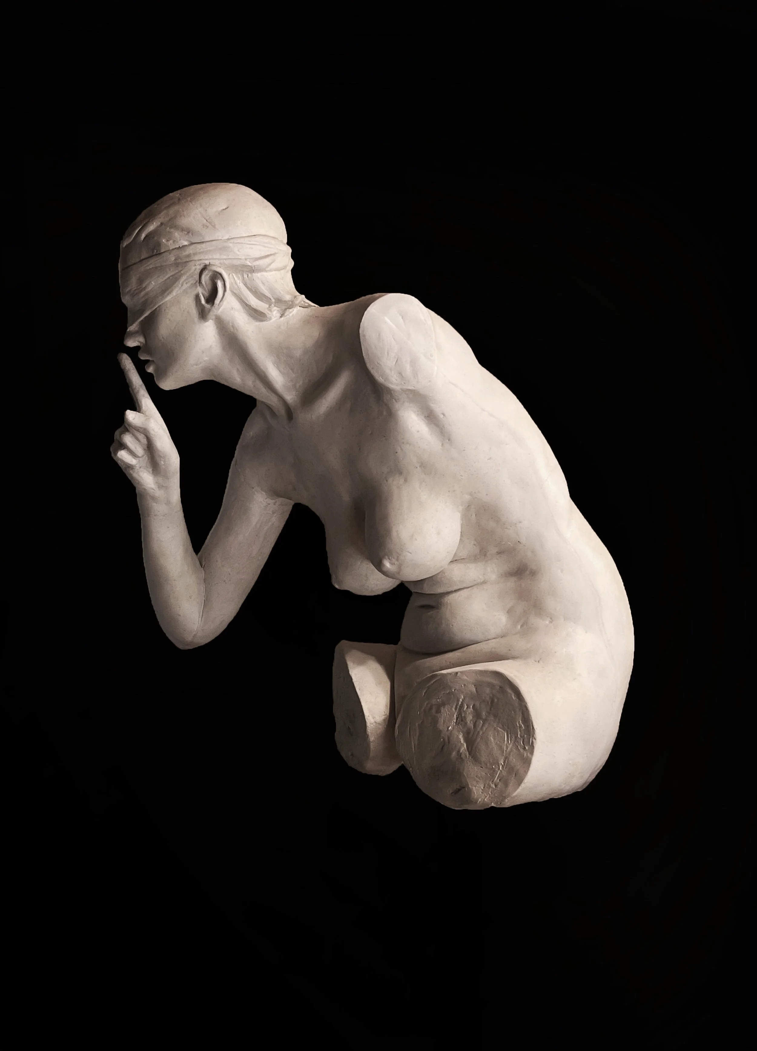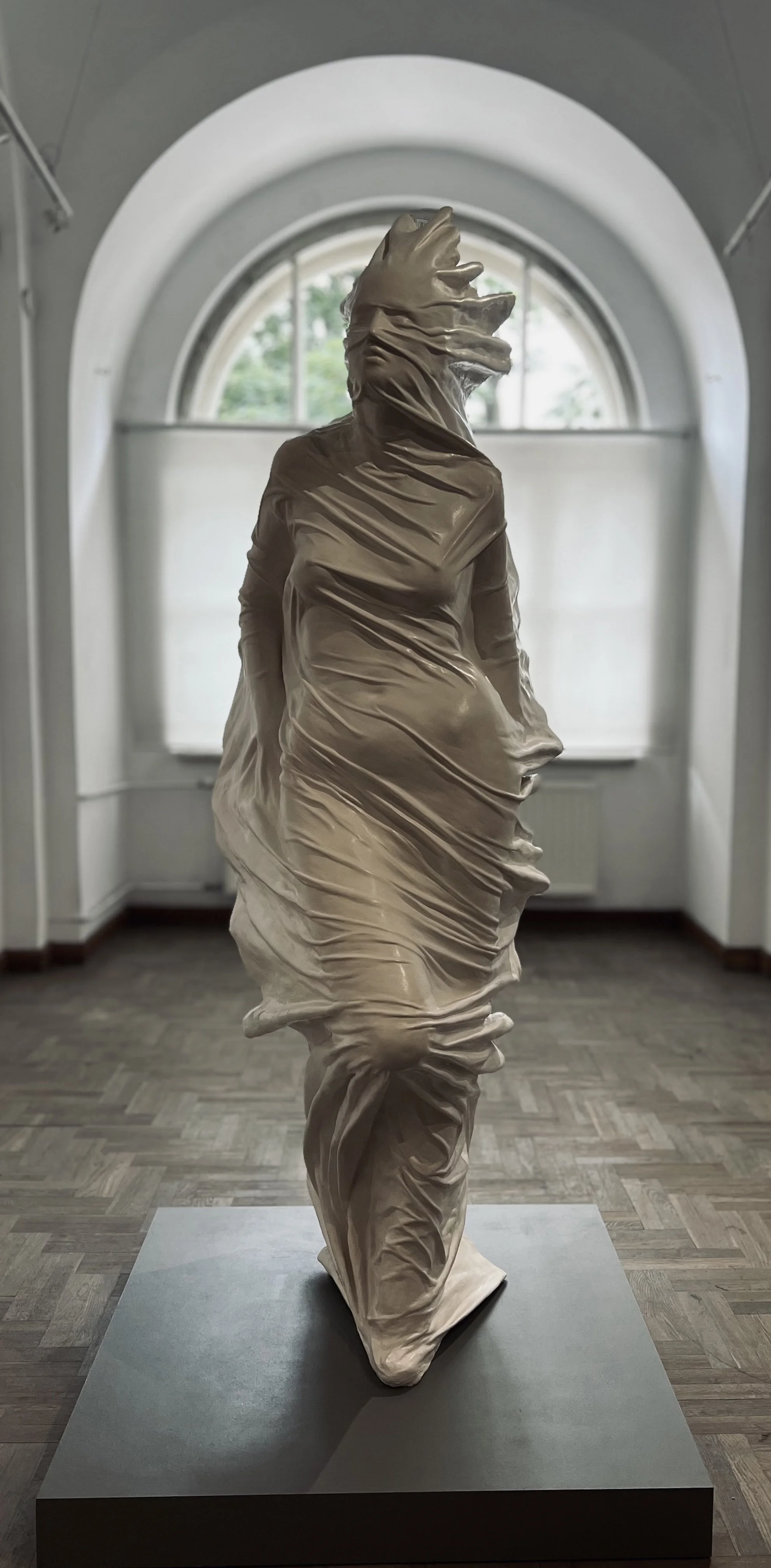 It’s a sculpture that reflects the female figure in matter covering the entire body. The sculpture refers to the style of wet robes and expresses my fascination with realistic figuration.
